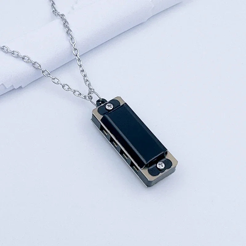 Crafted with a metal cover plate and smooth resin sound holes. Intentionally small in scale and designed as a pendant rather than a full-size instrument.