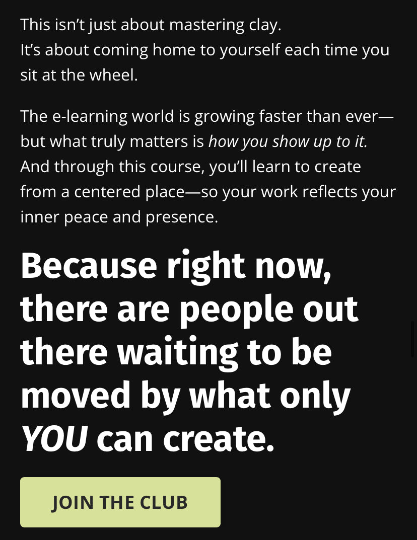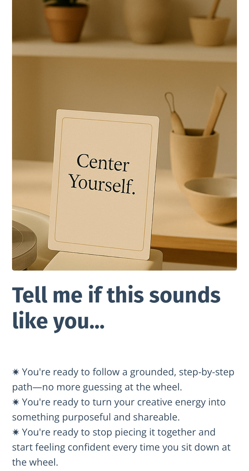 Discover the art of stillness through clay. The Centered Ceramicist is a self-paced online pottery wheel journey that blends mindfulness and professional ceramic instruction. Learn how to center clay, and yourself, before you ever touch the wheel.